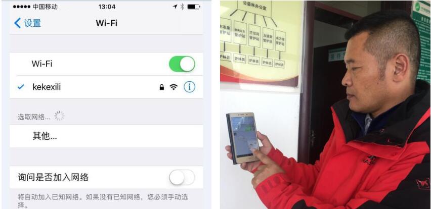 可可西里野生動(dòng)植物保護(hù)協(xié)會(huì)陳會(huì)長在保護(hù)站測試衛(wèi)星WIFI